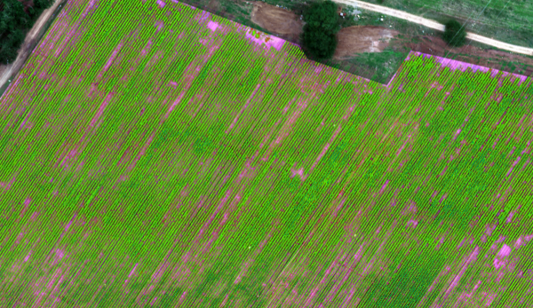 基于植被的指纹谱构建植被指数,完成指定区域内目标植被的空间分布和面积统计,为农业、林草、生态等领域的科研和生产提供定量化的植被郁闭度数据。