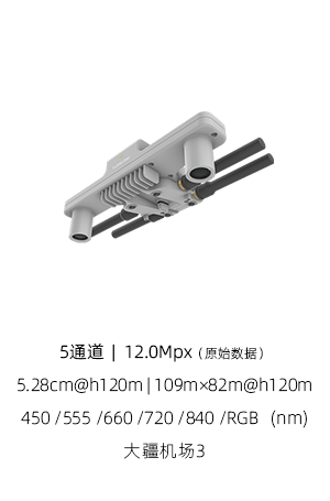 5个原始像素12M多光谱通道,创新双镜头多波段设计,原始分辨率高达2.6cm@120m,标配DLS下行光传感器与标准漫反射板,内部集成机载运算终端与5G/WIFI模块,整机一体化控制,满足农田、森林、河湖岸线等场景的精细化监测需求。