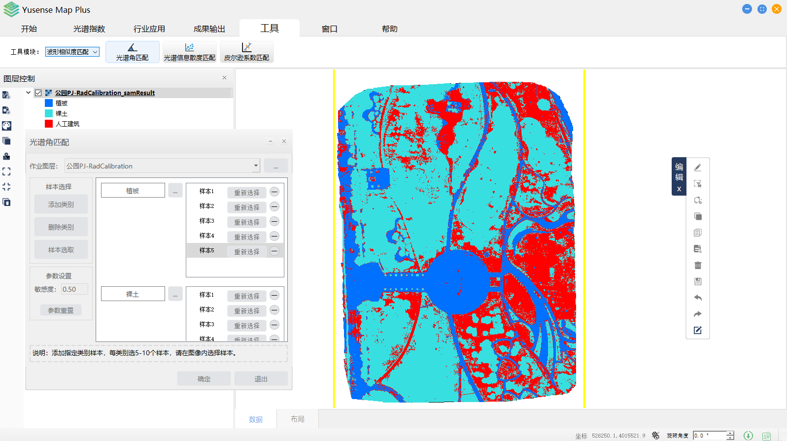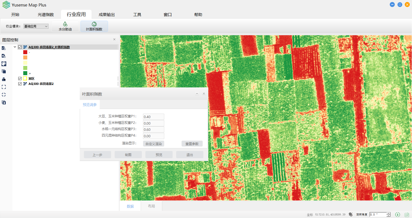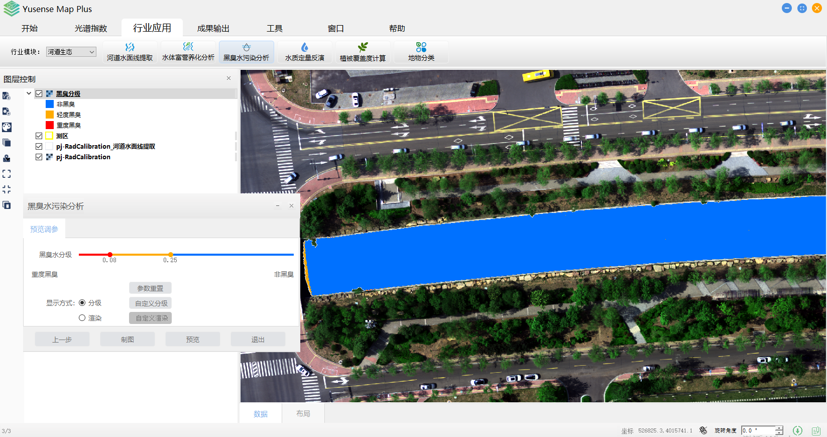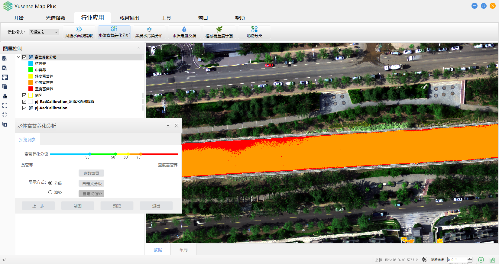 Yusense Map Plus是一款专业的多光谱数据行业应用软件,主要面向无人机遥感行业用户,可通过简单便捷的操作完成目标分析、识别及成果输出等一系列流程化处理,覆盖农作物长势监测、松材变色立木识别、植被覆盖度计算、水面线提取、水体富营养化分析、黑臭水污染分析、地物分类等典型行业应用。